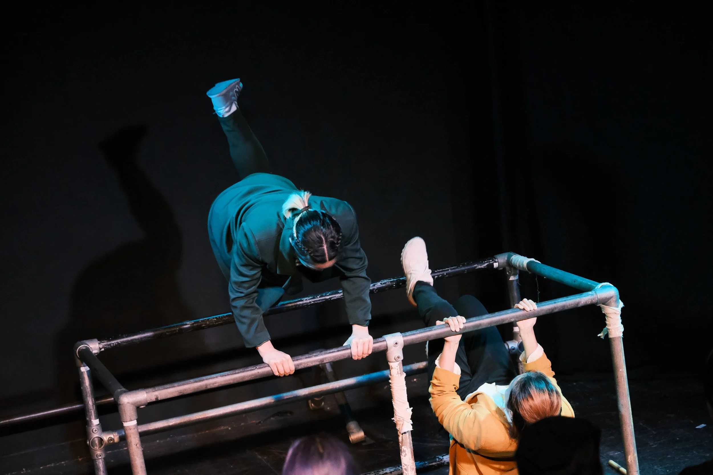 Ancestral Time Travel Agency is inspired by Louiseanne and Isabella’s Hong Kong heritage and their respective family histories. Using a parkour set to physically and metaphorically time travel, characters depicted from memories, and delving into ancient Chinese customs such as footbinding, they search for what it means to be a woman/non-binary person in the world today.